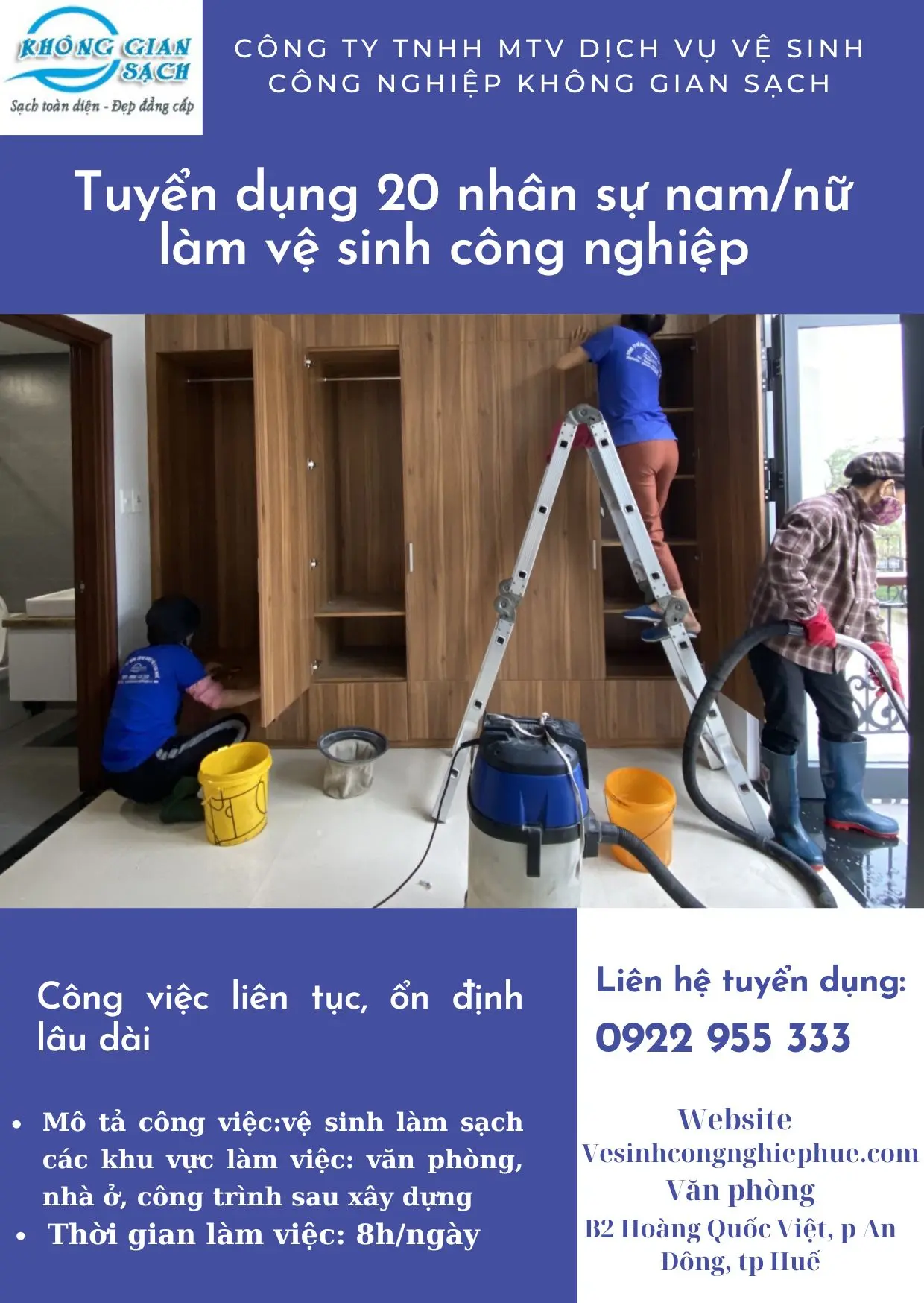 Công ty vệ sinh công nghiệp Không Gian Sạch cần tuyển dụng nhân viên vệ...