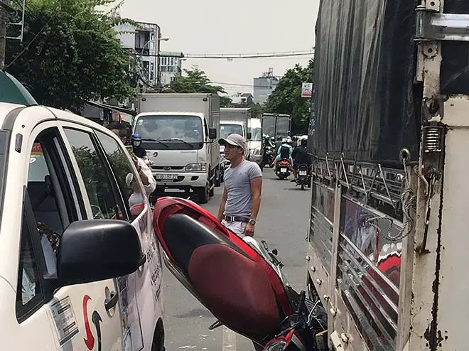 Chạy chen vào giữa xe taxi và xe tải khiến, 3 học sinh đi xe...